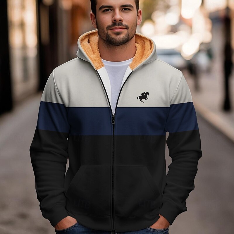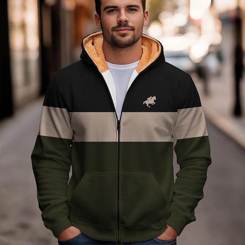 HOT ! Men's Color Block Fleece Hoodies Fashion Ethnic Long Sleeve Hooded Party Streetwear Red Blue Drawstring Fall Winter Designer