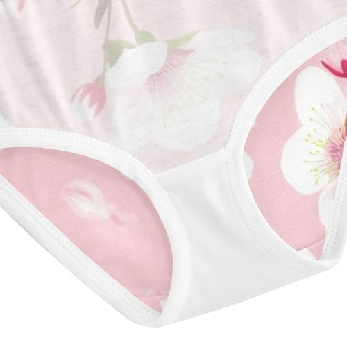 White Pink Cherry Blossom Flowers Toddlers Underwear Floral 2t Cotton Panties for Girl Durable Undies Kids Briefs 4