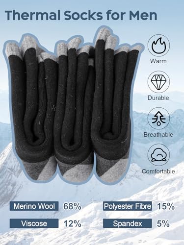 • Ultra Warm & Cozy: Winter socks for men offer a soft, cozy feel with a fine texture, ensuring you stay warm in cold weather; Made of durable wool, wool socks are suitable for machine washing and provide lasting comfort