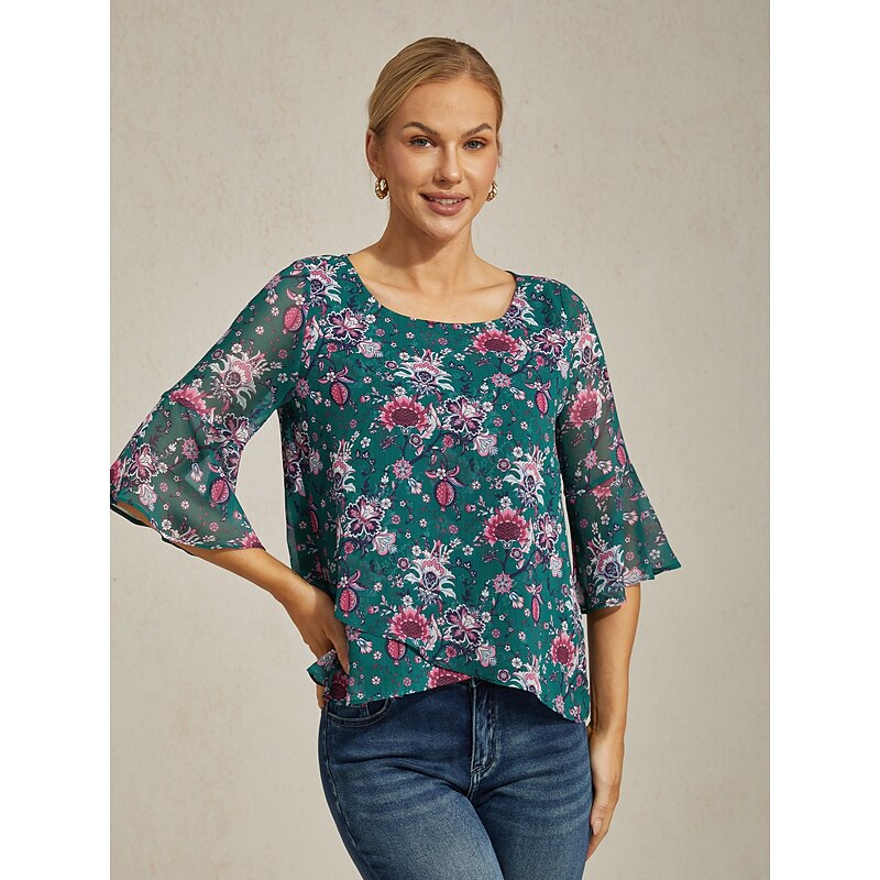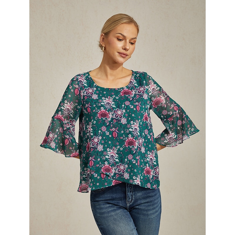 $61.99 - Women's Green Floral Print Sheer Flowy Chiffon Blouse Flared Sleeve 2025. Shop for cheap Shirts,Tops & Blouses online? Buy at lightinthebox.com on sale today!