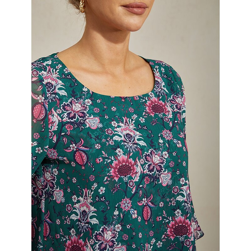 More information about Women's Green Floral Print Sheer Flowy Chiffon Blouse Flared Sleeve