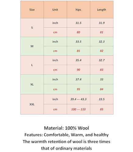 • Material: This mid length skirt is made of 100% wool, which provides high warmth. It is supple, skin friendly, highly elastic, and super pleasant, making it perfect for wearing over long pants in winter to keep warm.