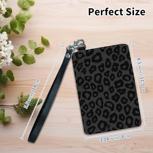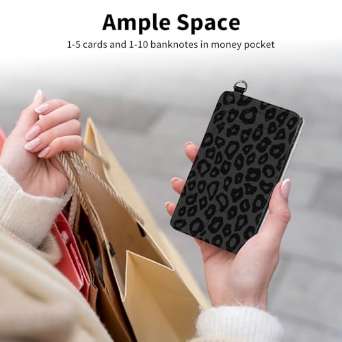 Credit Card Holder for Women, RFID Wallet Women with Wrist Rope Set, PU Leather Small Womens Wallet Slim Card Organizer Gifts Girls for Travel Home Shopping Business, Leopard Cow Print 5