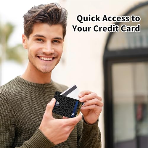 HOT ! Credit Card Holder for Women, RFID Wallet Women with Wrist Rope Set, PU Leather Small Womens Wallet Slim Card Organizer Gifts Girls for Travel Home Shopping Business, Leopard Cow Print