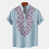 More information about Men's Ethnic Linen Shirt Summer Shirt Short Sleeve Casual Tribal Vacation Daily Summer Spring Mandarin Collar Print Blue Khaki Gray