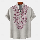 popular ! Men's Ethnic Linen Shirt Summer Shirt Short Sleeve Casual Tribal Vacation Daily Summer Spring Mandarin Collar Print Blue Khaki Gray
