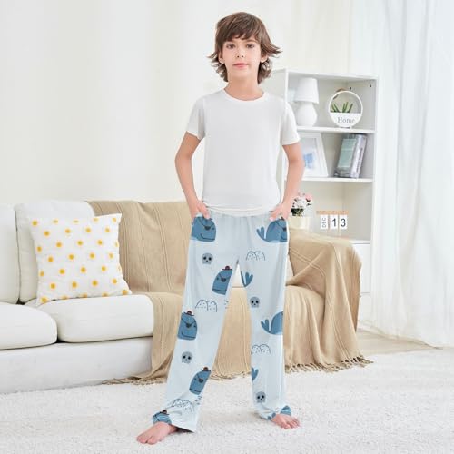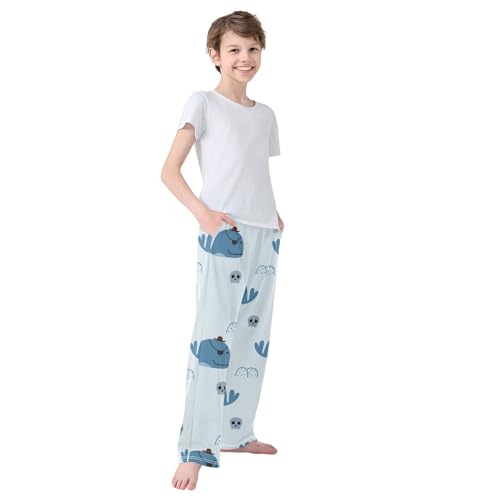 Whale Pirate Boys Pants Boys Athletic Pants Long Pant for Boywith Pockets Wide-Leg Size 6-14Y 6
