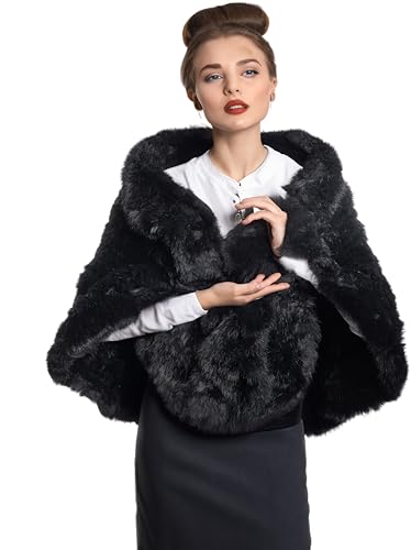 • Material: Crafted from 100% real rabbit fur, this fur poncho offers a soft, breathable feel. Its natural texture provides superior warmth compared to faux fur ponchos, ensuring both luxury and comfort