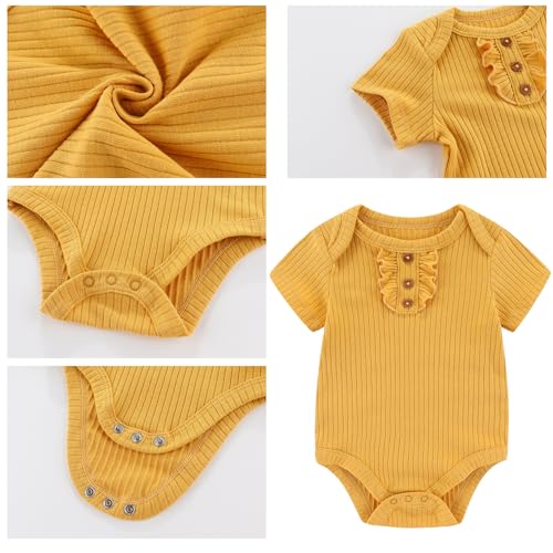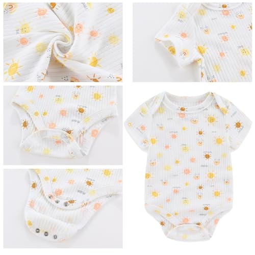 Baby Girls Boys Short Sleeve Outfit Romper With Headband Set Clothes New Born Cotton Bodysuits 5-Pack 0-12M 5