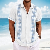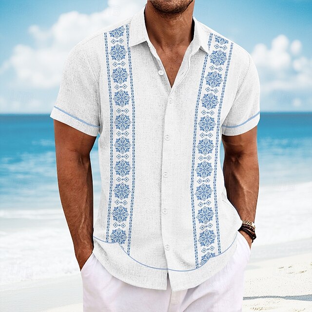 More information about Men's Geometric Floral Print Flowers Shirt Guayabera Shirt Button Up Shirt Short Sleeve Fashion Casual Vacation Dailywear Beach Wear Summer Spring Turndown Collared Shirts White Blue