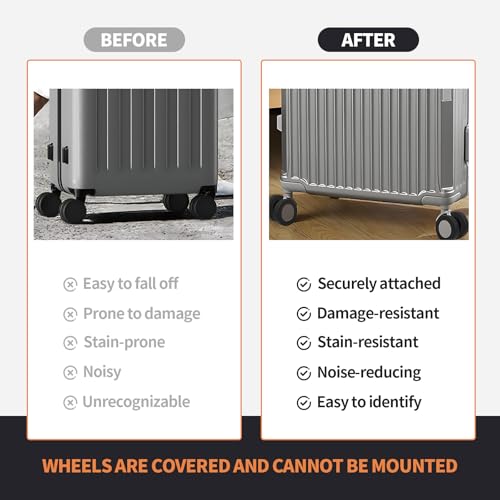 • Perfect Fit for Spinner Luggage – Designed for 8 spinner wheels, these luggage wheel covers fit 2.1"-2.4" suitcase wheels perfectly. Works with carry-on luggage, rolling suitcases, spinner wheel for luggage, and even replacement suitcase wheels.