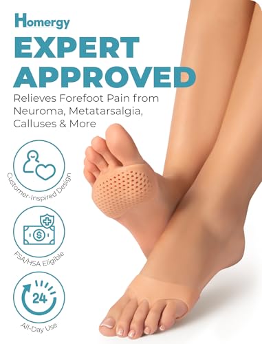 HOT ! Homergy Metatarsal Foot Pads for Pain Relief - 4 Pack Soft Gel Reusable Breathable Sleeve Pads, Foot Cushions, Forefoot Cushioning Shoe Supports for Women and Men