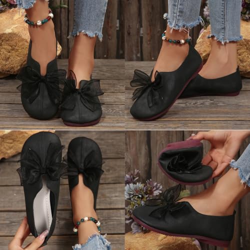 HUIQINGLI 2025 New Women's Vintage Mary Jane Flats with Bow Detail Dressy Comfortable Foldable Slip On Round Toe Soft Sole Shoes 6