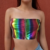 $15.49 - Retro Vintage 1980s Tube Top Disco Shiny Latex Patent Metallic Rainbow Fancy Dress Women's Halloween Carnival Pride Parade Pride Month Adults Corset Summer 2025. Shop for cheap Tops online? Buy at lightinthebox.com on sale today!