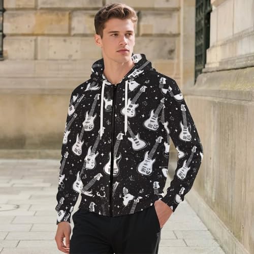 Rock And Roll Themed Men's Hoodies with Zipper Lightweight Long Sleeve Casual Sweatshirts 6