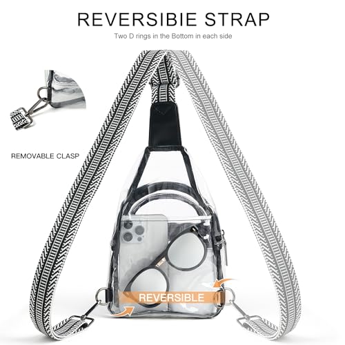• ✓Sturdy and Exquisite Sling Bag:The thickness of this clear crossbody bag is 0.4mm PVC,which is very sturdy to carry many things.Our clear bag is made of high quailty PVC,exquisite workship,sturdy stitching,and durable hardware.Wide and long adjustable strap can be worn in various ways,wear as sling bag,crossbody bag,belt bag,providing flexibility for different outfits and preferences.