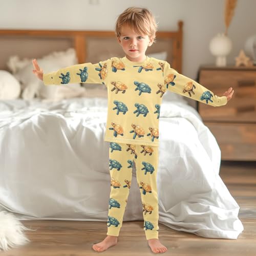 Pajama Sets Long Sleeve Sea Colorful Turtle Pattern Print Soft Comfy Sleepwear 2 Piece PJS 3-8T 4