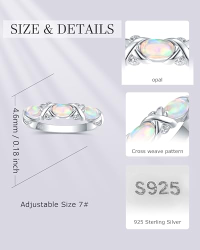 S925-Sterling-Silver Opal Eternity Rings for Women - Stackable Band Rings Elegant Unique Design Ring Fashion Accessory Jewelry Gifts for Everyday Wear and Special Occasions 6