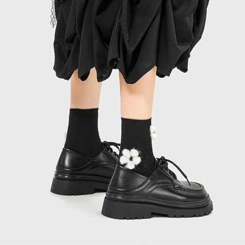Women's Leather Chunky Platform Oxfords Fashion Wide Round Toe Platform Lace-Up Brogues Dress Shoe for Daily Work Shoes 7