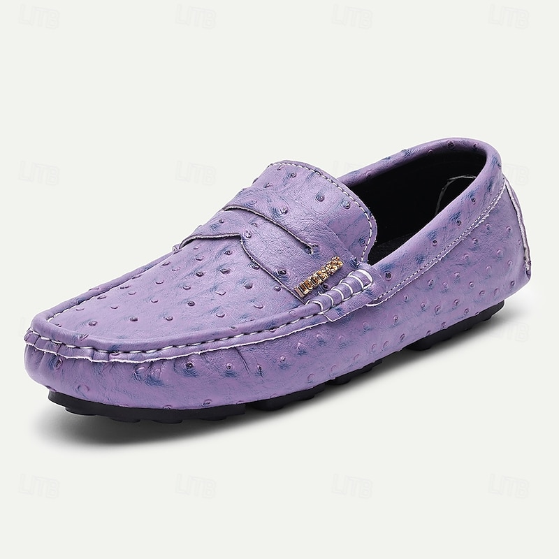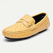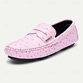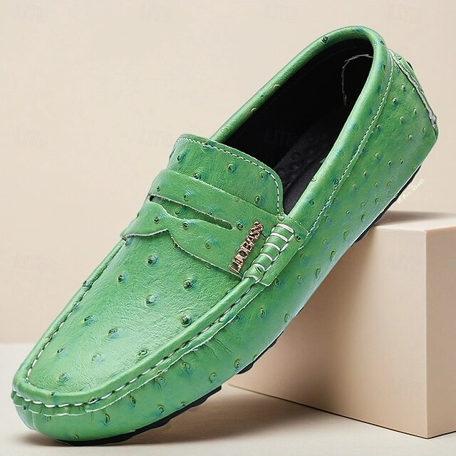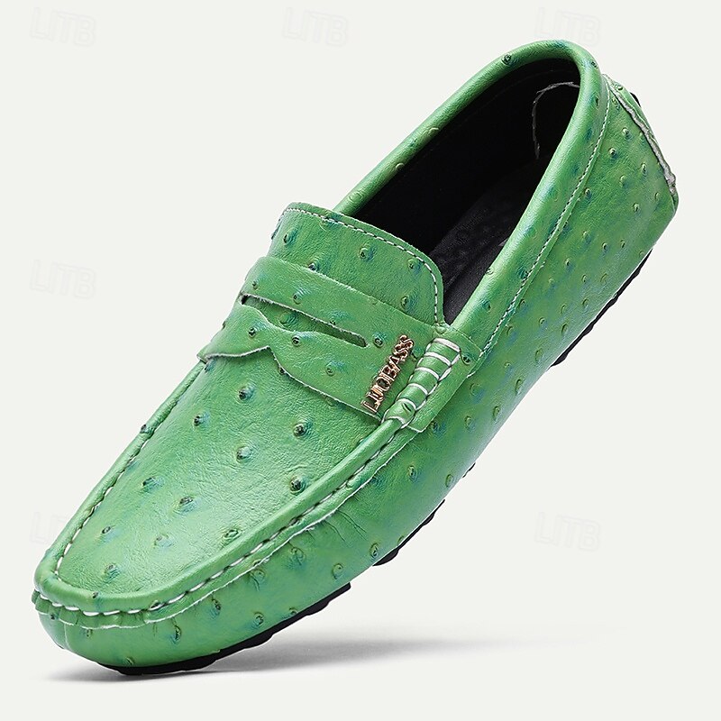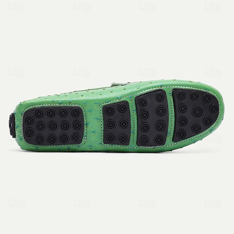 More information about Men's Green Ostrich Print Moccasins – Stylish Faux Ostrich Leather Slip-On Shoes, Comfortable Daily Footwear for Casual Outings and Summer Wear