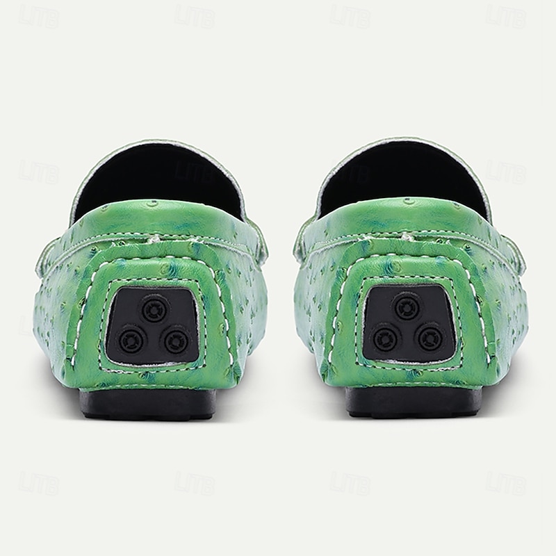 Men's Green Ostrich Print Moccasins – Stylish Faux Ostrich Leather Slip-On Shoes, Comfortable Daily Footwear for Casual Outings and Summer Wear 5