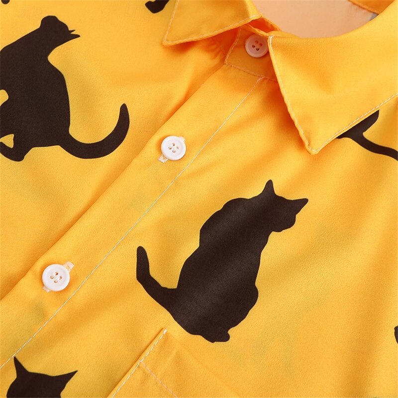 Retro Vintage 1970s Shirt Aloha Shirt Hippie Disco Cat Fancy Dress Men's Vacation Party Pride Parade Adults' Shirt 6