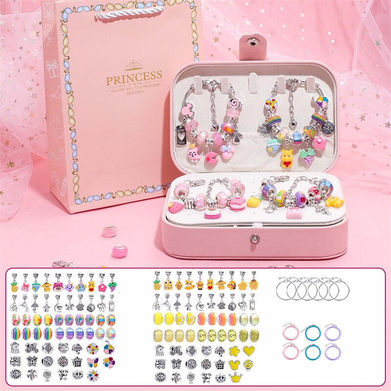 Hot-selling children's handmade diy beaded bracelet gift box set cute multicolor animation pendant resin bracelet jewelry 29