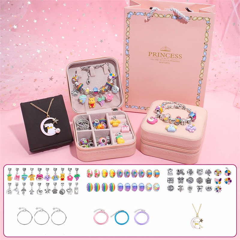 HOT ! Hot-selling children's handmade diy beaded bracelet gift box set cute multicolor animation pendant resin bracelet jewelry