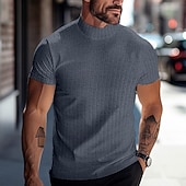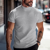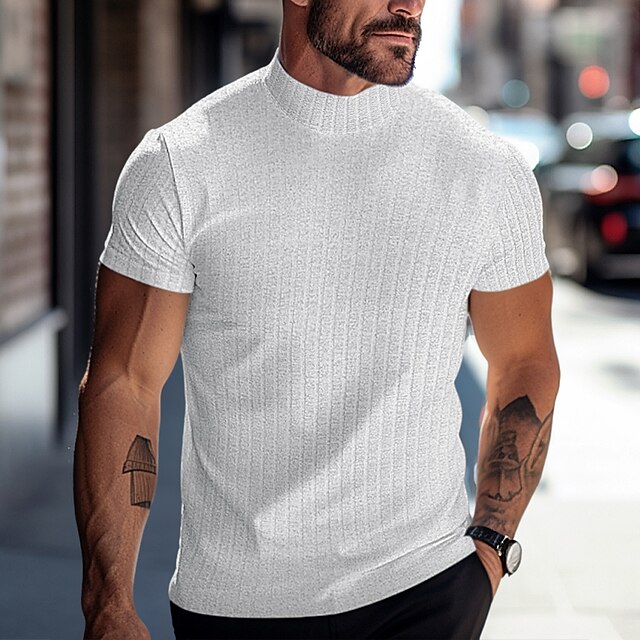 More information about Men's T Shirt Muscle Shirt Ribbed Knit tee Tee Top Short Sleeves Turtleneck Summer Plain Pit Strip Fashion Designer Basic Slim Fit Vacation Street Going out Dark Grey Black White Top Tee for Men