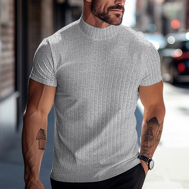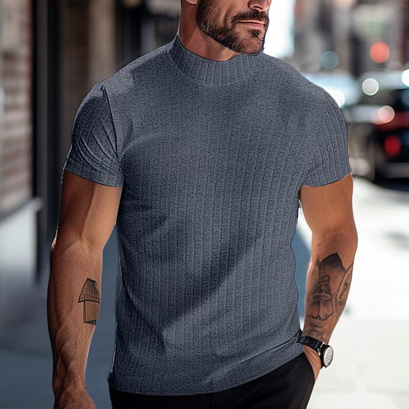Highlights - Perfect for summer season - Designed for men - Ideal for vacation - Features a trendy turtleneck neckline