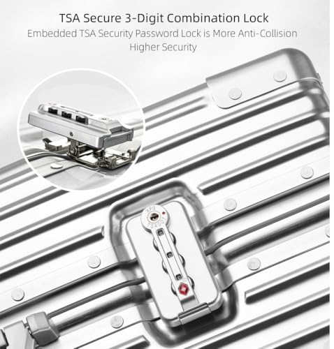 • Fashion All Aluminum Magnesium Alloy Hardside Carry on Luggage: The surface and frame of the Luggage are made of aviation grade 5 aluminum-magnesium alloy material, which is lighter, stronger and has better compressive strength. Aluminum magnesium alloy bumper corner to prevent impact. The luxury of the all aluminum suitcase with scratch resistant and beautiful shiny appearance is overwhelmin