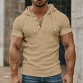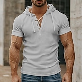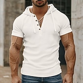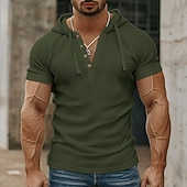 More information about Men's Waffle Knit Tee Tee Top Short Sleeve Hooded Summer Solid Color Daily Casual Buttons Hooded Outdoor Street Causal Army Green White Khaki Top Tee for Men