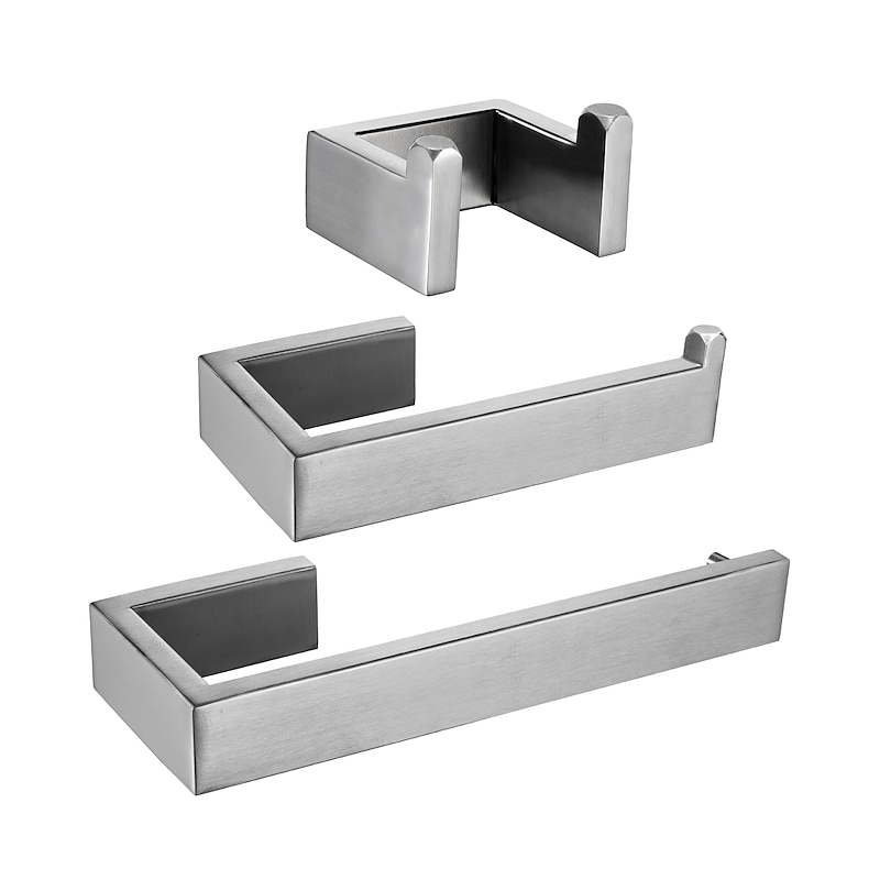 Highlights Product Selling Points: - Made with 304 stainless steel, a material that undergoes formal testing - Provides strong corrosion resistance and will not rust, making it durable for more than 20 years - Offers high value preservation due to its durability and material quality - Boasts high hardness, ensuring resistance to damage - Eco-friendly, promoting health and safety for your family - Available in various bathroom hardware types such as towel bars, toilet paper holders, and robe hooks - Finished with a brushed texture for a sleek and stylish appearance - Towel bars and robe hooks are made with stainless steel and A Grade ABS material, while toilet paper holders are made solely from stainless steel.