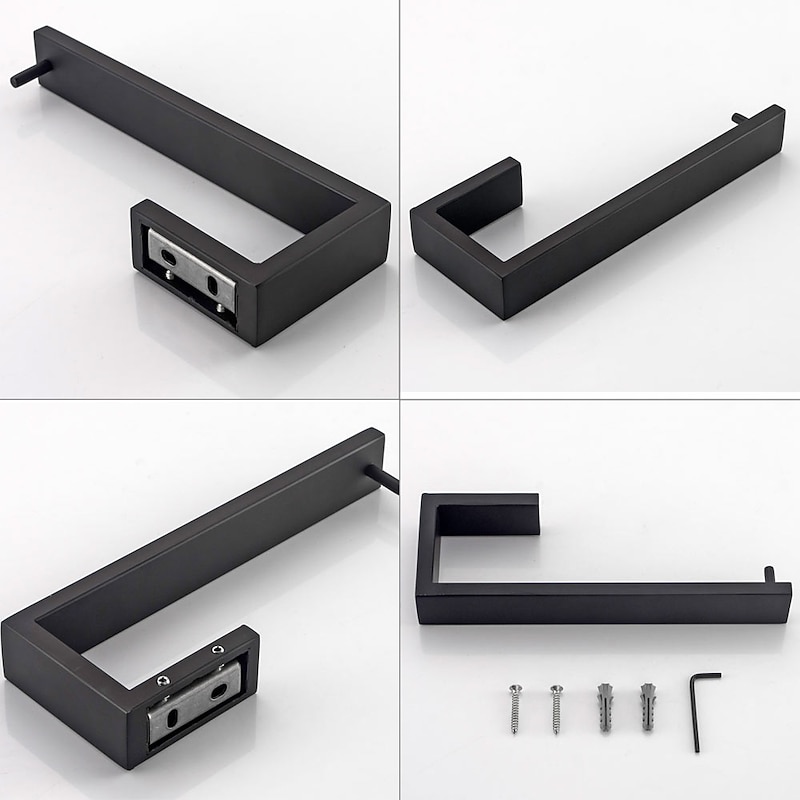 Bathroom Accessory Set 3 Piece Stainless Steel,Wall Mounted Towel Bar,Toilet Paper Holder and Robe Hook,Bathroom Hardware Set(Black/Brushed Nickel) 4