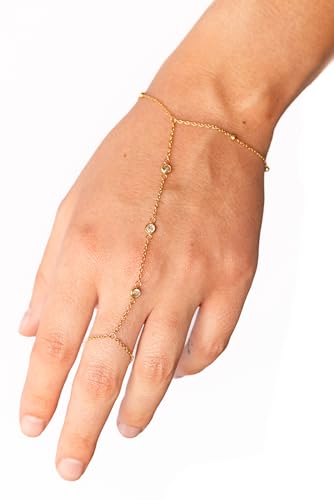 14K Gold Hand Chain Bracelet - 1.2mm Gold Finger Ring Bracelet - Non-Tarnish and Waterproof Hand Bracelets for Women - 5.5" to 7" length - Dainty Gold Bracelet 5
