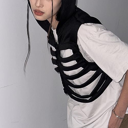 Women Gothic Skeleton Vest Y2k Hoodies Sleeveless Waistcoat Hollowed Skeleton Gilet For Men Unisex Outwear 6