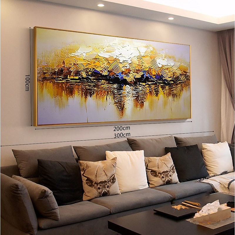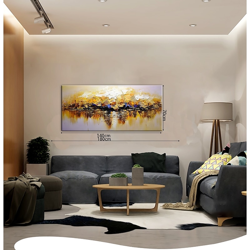 More information about Large Size Oil Painting 100% Handmade Hand Painted Wall Art On Canvas Abstract Golden Landscape Skyline Home Decoration Decor Rolled Canvas No Frame Unstretched