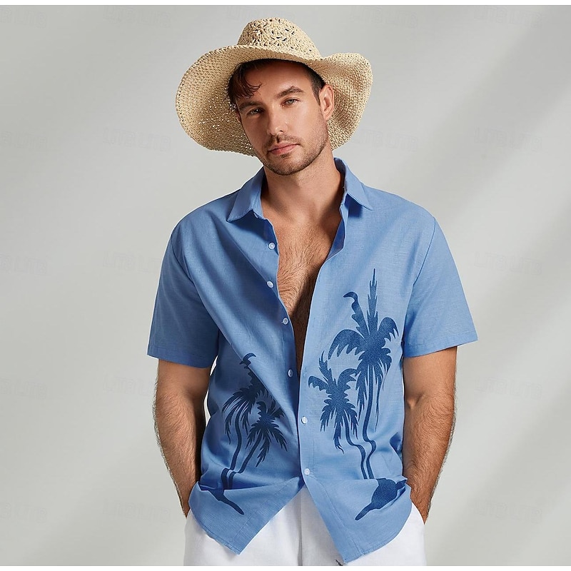 $5.49 - Men's Shirt Graphic Hawaiian Fashion Casual Linen Shirt Button Up Shirt Short Sleeve Daily Hawaiian Vacation Spring & Fall Lapel Print Blue Green Gray 55%Flax 45%cotton 2025. Shop for cheap Men's Elite Shirts online? Buy at lightinthebox.com on sale today!