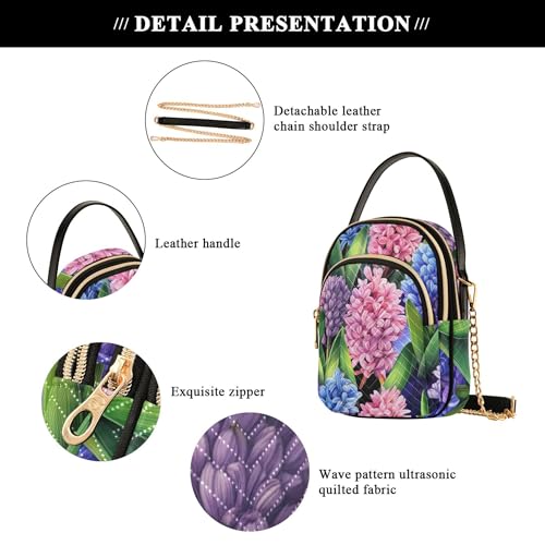 More information about Watercolor Flowers Pink Floral Leaves Women over Shoulder Purse Quilted Phone Handbag Small Chain Purse Cute Zipper Crossbody Bowler Bag