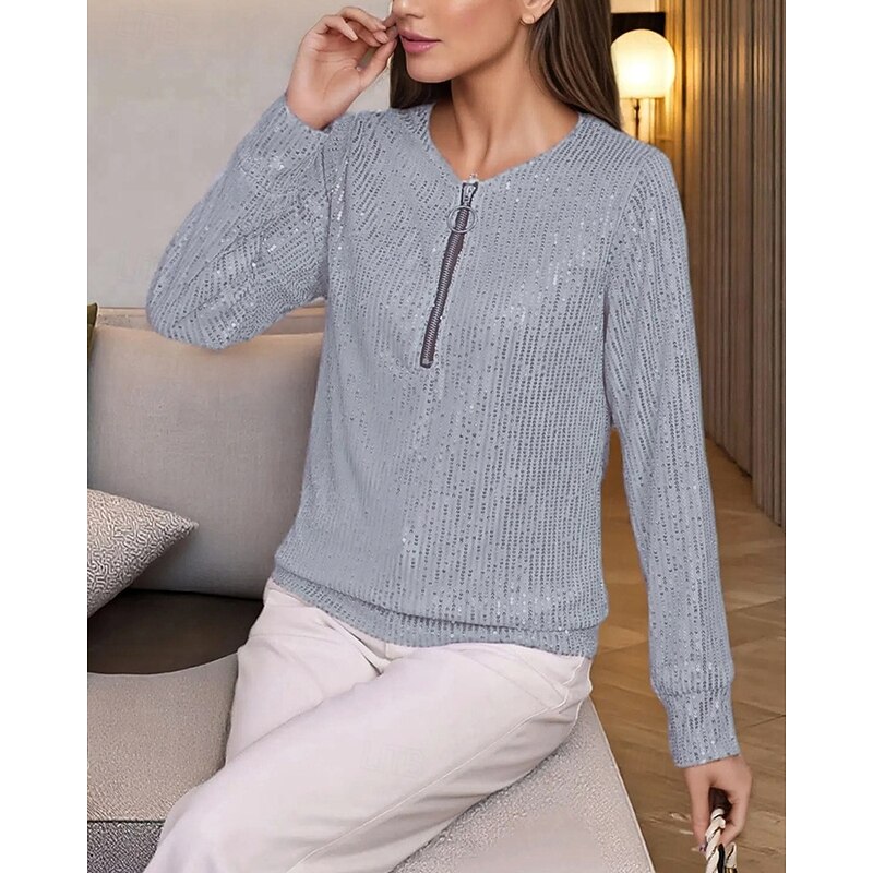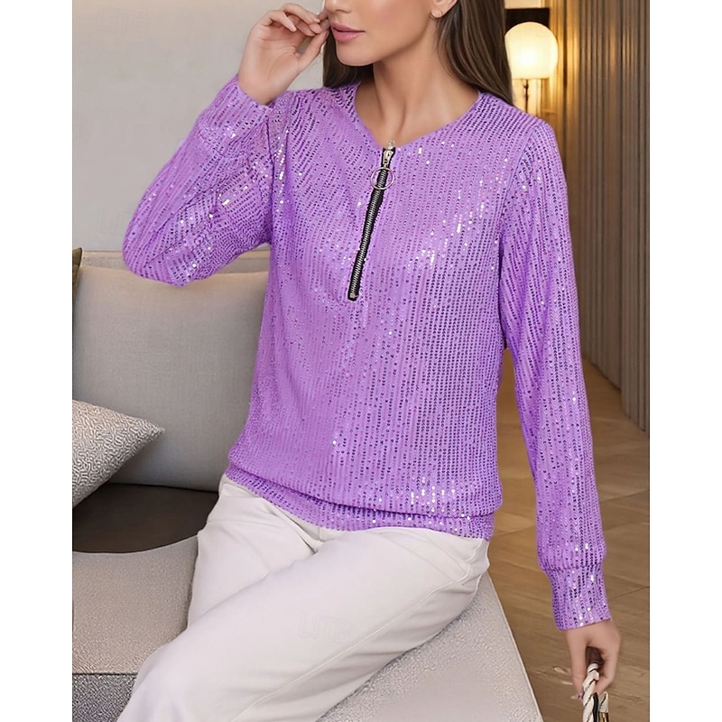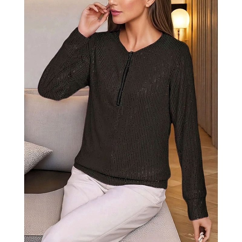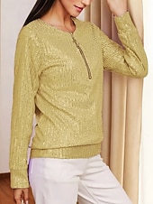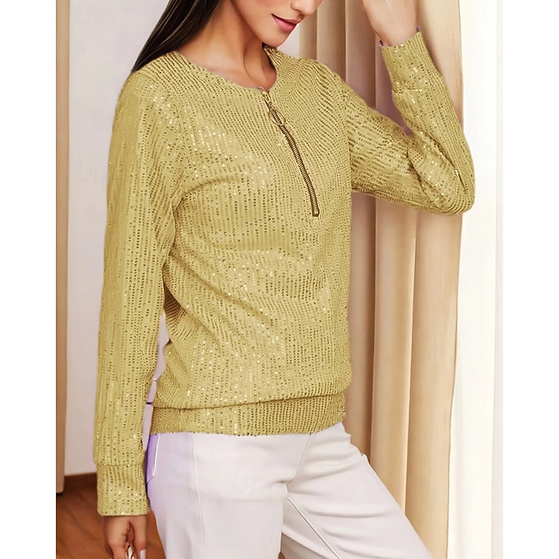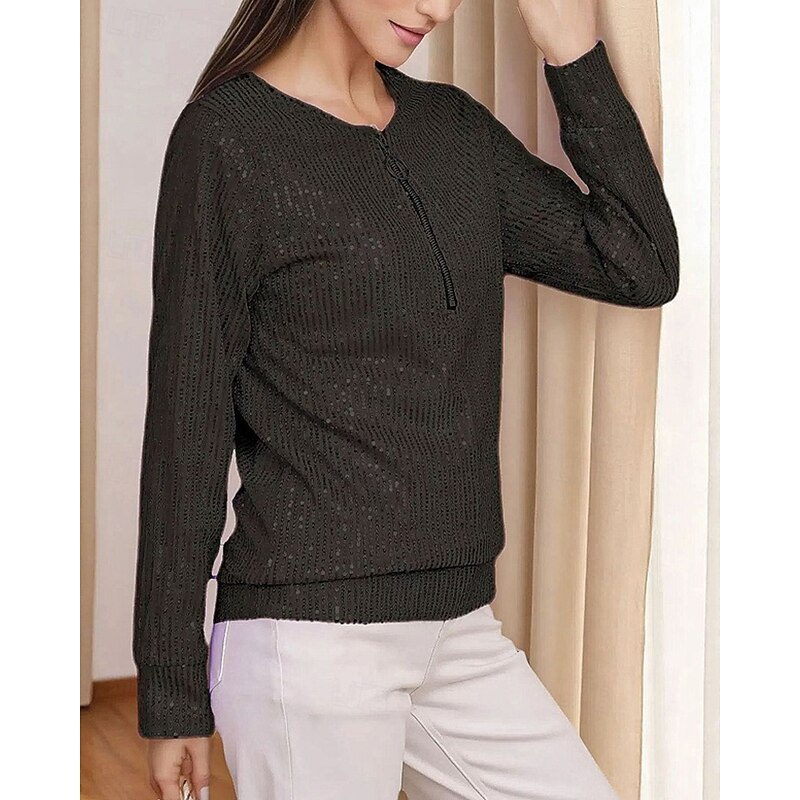 This Women's T Shirt Tee Top Plain Fashion contemporary Long Sleeve Crew Neck Regular Tops Daily Sequins Quarter Zip Black White Yellow Purple Green Spring Fall combines elegant design with practical functionality. Every detail has been carefully considered to ensure you get the best possible experience. The premium construction means this product will serve you well for years to come.