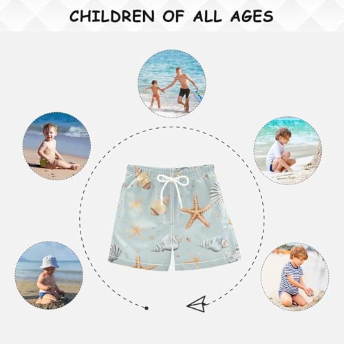 HOT ! Small Starfish and Shells Light Blue Boy Beach Shorts Teens Bathing Suit Lightweight with Pocket Beach Swimming 2T