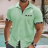 More information about Men's Leaf Plants Shirt Summer Shirt Button Up Shirt Short Sleeve Fashion Casual Holiday Beach Wear Summer Spring Turndown 3D Print Collared Shirts Front One Pocket Pink Blue Green