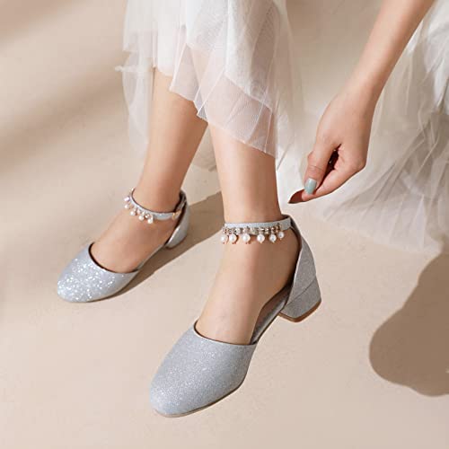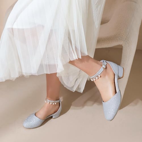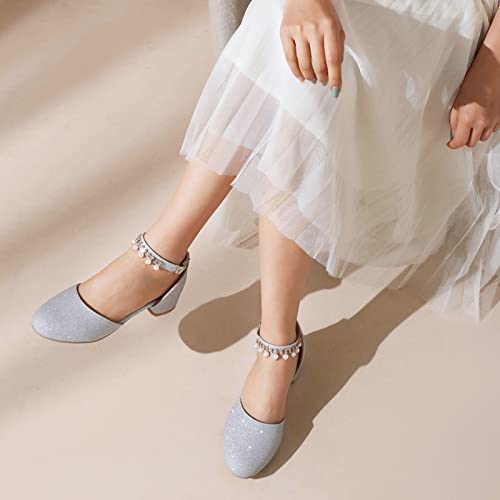 Bride Wedding Ankle Strap Block Low Mid Heels Sandals Shiny 7