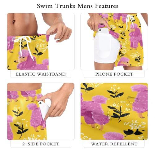 Poodle Spring Flower Men's Swim Trunks with Liner Quick Dry Beach Shorts Swimwear Bathing Suit S-XXL 6