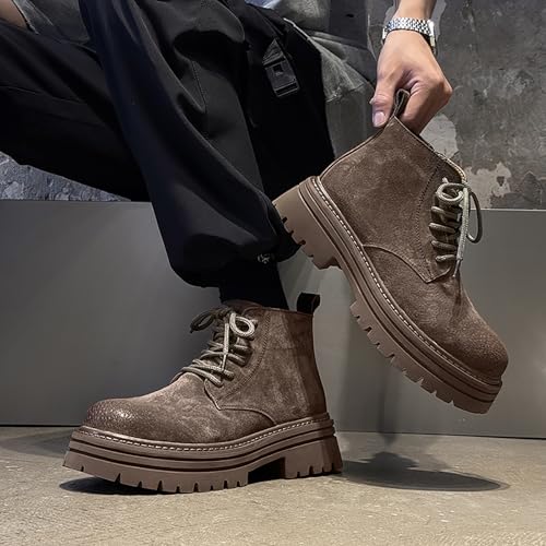 Men's Platform Chukka Boots Fashion Suede Chunky Heel Ankle Boots Casual Lace up Side Zip Lug Sole Non-Slip Motorcycle Boots 7