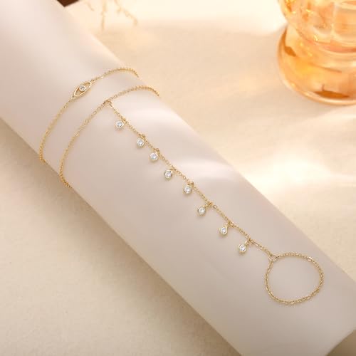HOT ! CHESKY Hand Chain Bracelet for Women Trendy, Dainty 14k Gold Plated Ring Bracelets Hand Chain Hypoallergenic Finger Nail Bracelet Gold Hand Jewelry for Women