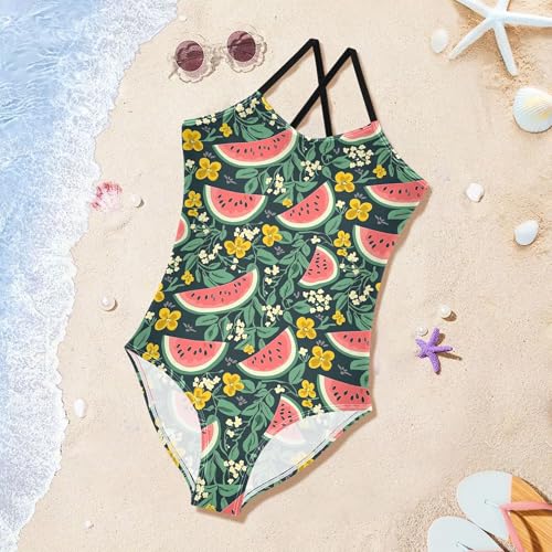 Girl's Swimsuit 1-Piecing Toddler Girl Bathing Suit Swim Suits for Girls Beach Swimwear 3T Watermelons Slices Leaves Flowers 1