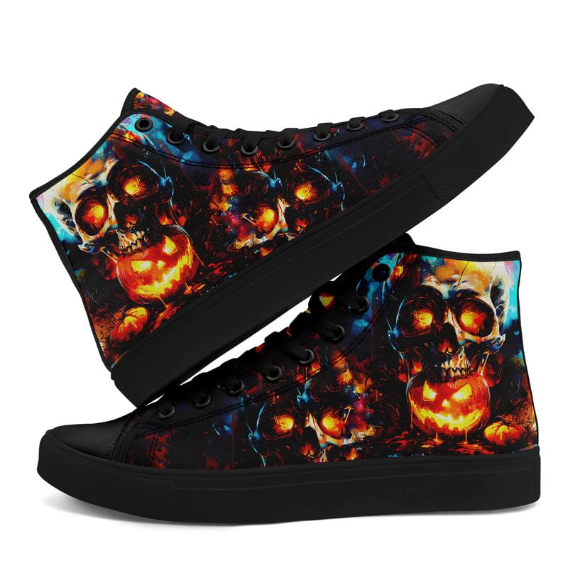 High Top Canvas Sneakers for Men Women Skull Printed Fashion Shoes Lace up Casual Walking Sneaker 5