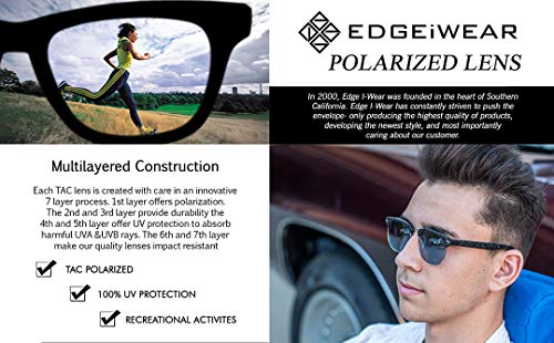 • ULTRA-LIGHT & MAXIMUM COMFORT: Edge I-Wear sunglasses made with high quality polycarbonate material that are ultra-light weight and durable for long term use. Our light weight frame design ensures maximum comfort; you can barely feel it on your face. It's perfect for any outdoor activities!