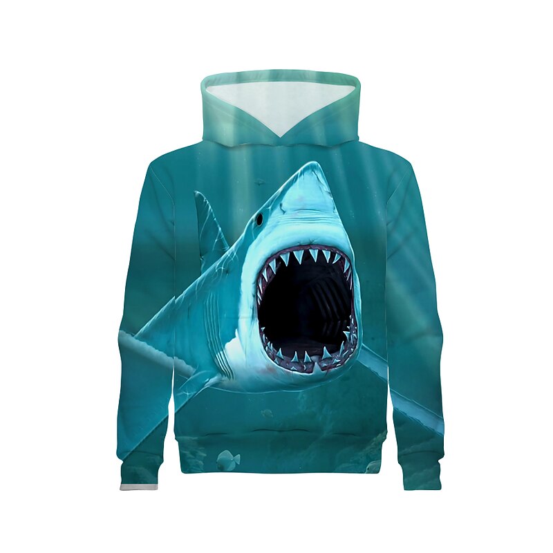 More information about Boys 3D Shark Hoodie Long Sleeve 3D Print Spring Fall Active Polyester Kids 4-12 Years Dailywear Casual Regular Fit